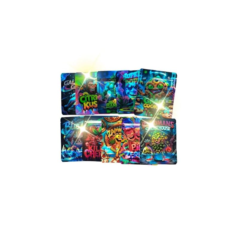 100 bolsas de Mylar de Halloween, bolsa con cremallera de 0.12 oz, patrón especial de 2 dólares, bolsas de dulces resellables de 5.01 x 4.01 pulgadas, bolsa de gomitas para almacenamiento de Navidad
