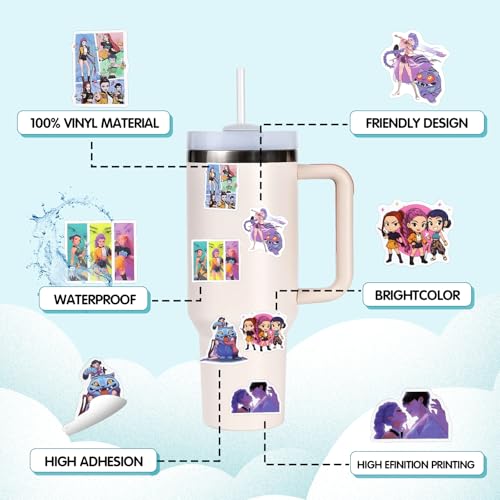 Especificaciones: 110 calcomanías de dibujos animados geniales, calcomanías holográficas para botellas de agua, calcomanías de vinilo impermeables, calcomanías de anime de películas para laptop, teléfono, diario