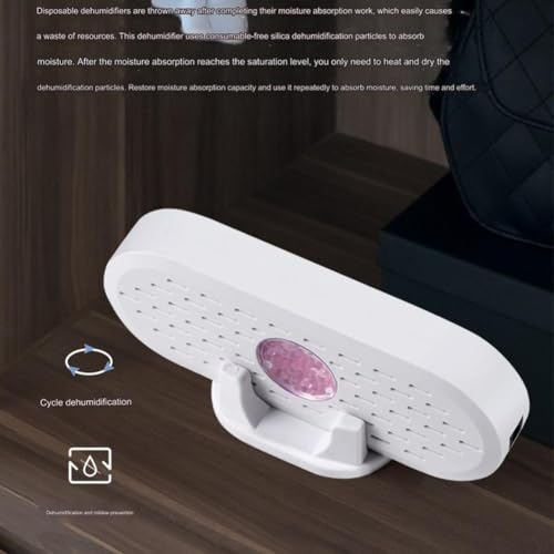 Compacto y conveniente para el estilo de vida sobre la marcha: este deshumidificador portátil es ligero y fácil de mover, por lo que es para espacios como armarios, armarios de almacenamiento, zapateros y estanterías.