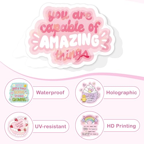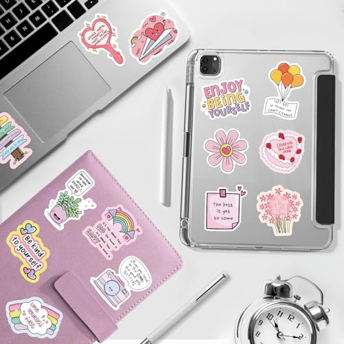 Calidad premium y vitalidad duradera: hechas de vinilo duradero e impermeable, estas calcomanías están diseñadas para durar. Resisten la decoloración y el desgarro, y se despegan limpiamente sin ningún residuo pegajoso, asegurando que tus mensajes inspiradores se mantengan vibrantes en tu botella de agua, funda de teléfono o cuadernos