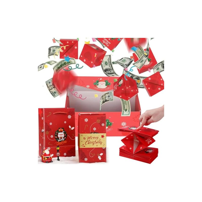 Especificaciones: 16 cajas de regalo sorpresa para dinero, caja emergente plegable con confeti, Navidad y cumpleaños 2025 (rojo)
