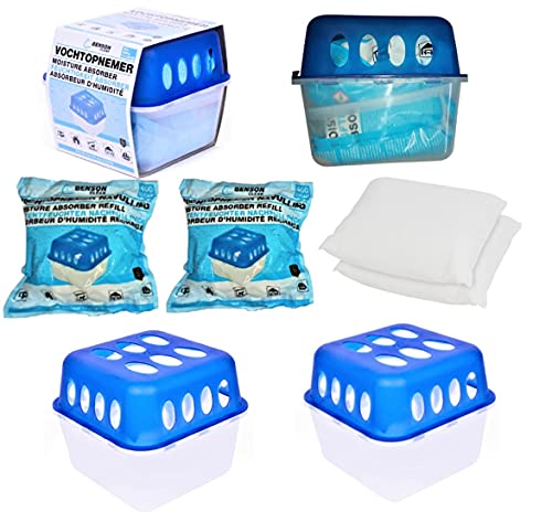 2 x 500 ml Deshumidificadores con 4 bolsas Deshumidificador, Absorbe la Humedad, Deshumidificador recargable, Tope de humedad, evita la condensación, la humedad y los olores a humedad en el aire, paredes textiles, techo, coche