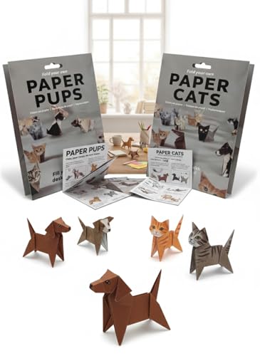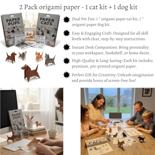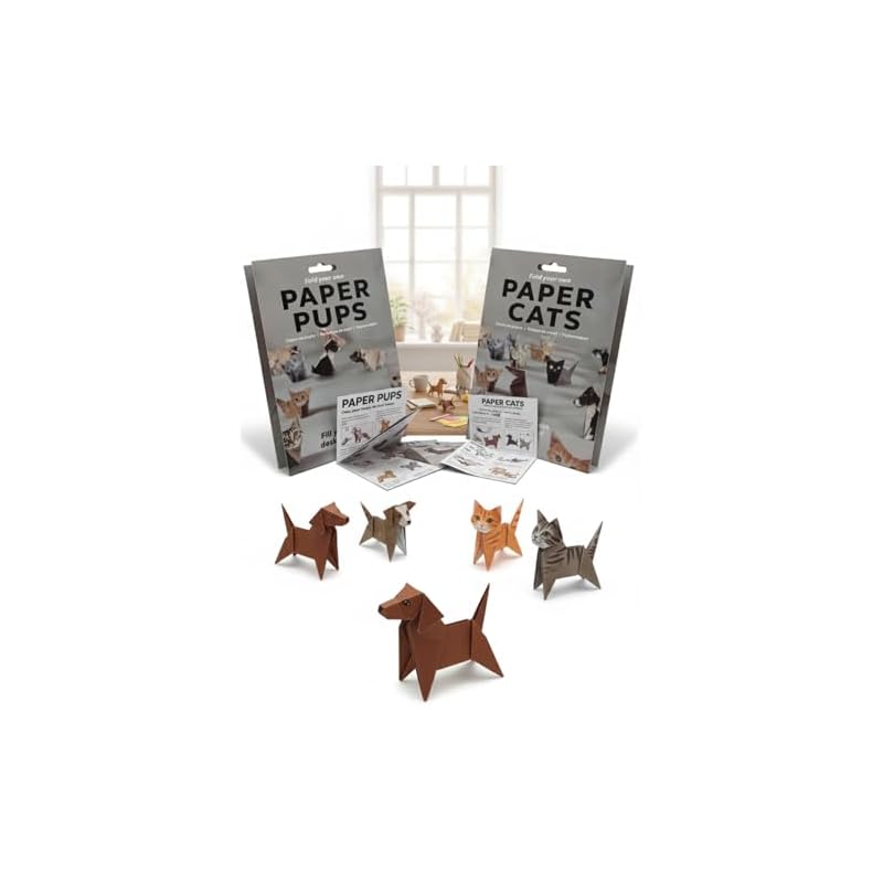 Dual Pet Fun: Package includes:1 * origami paper cat, 1 * origami paper dog. Get double the joy with our exclusive 2-pack featuring both «Fold Your Own Paper Pups» and «Fold Your Own Paper Cats» kits, perfect for dog and cat lovers alike!