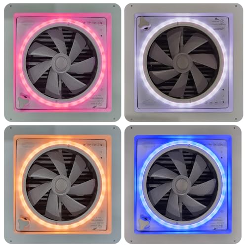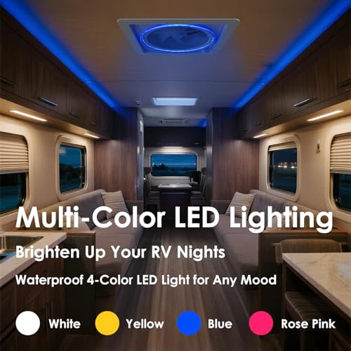 2012 Ventilador de ventilación de techo RV de 14 pulgadas con control de voz y luz LED de 4 colores, ventilador de escape inteligente reversible Air Max de 12 V a 24 V con control remoto y sensor de