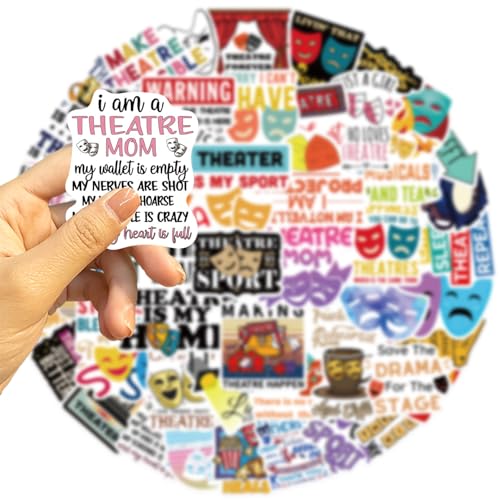 Especificaciones: 50 calcomanías de teatro, estéticas impermeables de vinilo para teatro musical para botella de agua, laptop, teléfono, monopatín, regalos lindos de moda para adolescentes, niñas y niños (J)