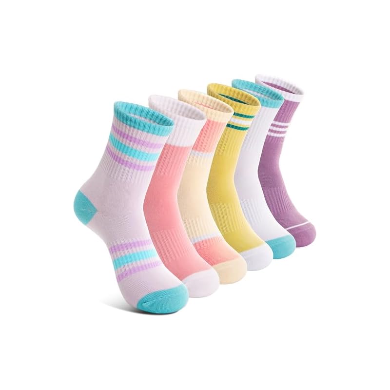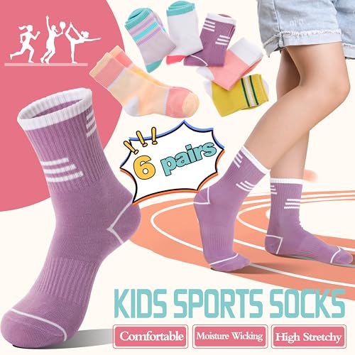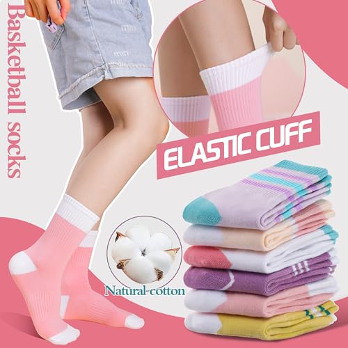 Especificaciones: 6 pares de calcetines deportivos para niños y niñas, de algodón, transpirables, suaves, para baloncesto