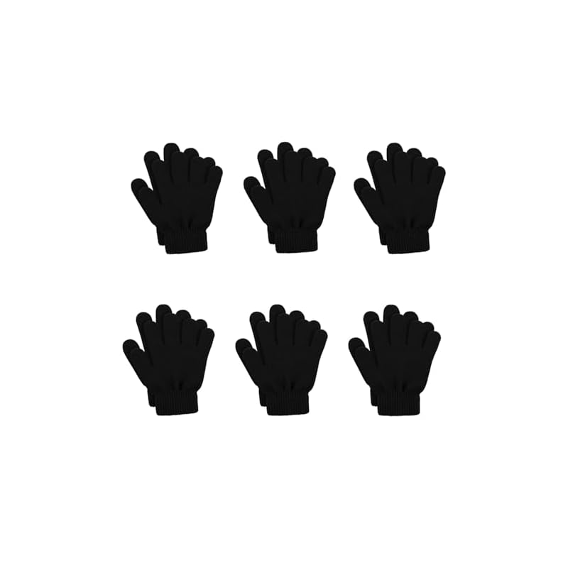 Especificaciones: 6 pares de guantes mágicos de invierno para niños, elásticos, unisex, guantes negros para niños y niñas, guantes mágicos de punto