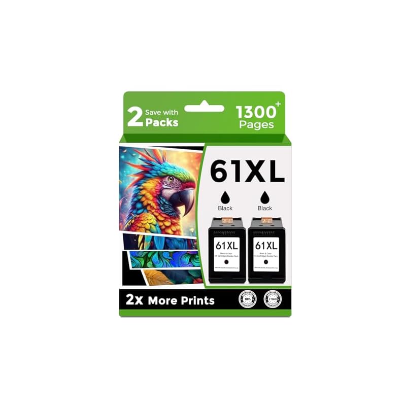 Especificaciones: 61XL Cartucho de tinta remanufacturado negro para HP 61 Ink 61 XL negro (2 negro) para impresoras Envy 4500 5530 4502 4501 5535 OfficeJet 4630 4635 DeskJet 2540 1000 1010 1510
