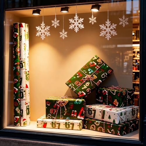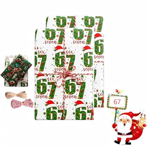 Humorous 67 Meme Christmas Gift Wrap: Featuring a fun and eye-catching design, this unique wrapping paper adds a playful twist to your holiday gifts. Perfect for creating smiles and laughter at any celebration