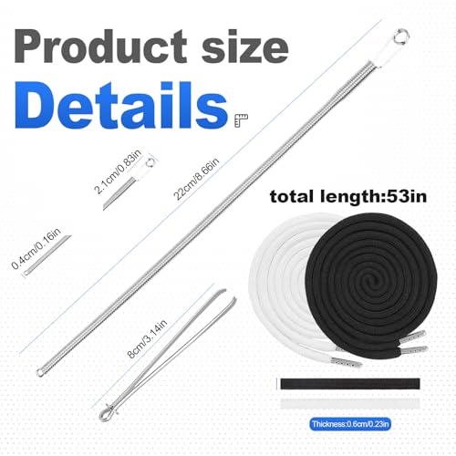 Juego de gran valor: recibirás 4 pares de cordones negros y 4 pares de cordones de repuesto blancos para pantalones de ropa deportiva, así como herramientas de enhebrado de cordón (larguero elástico largo y herramienta de enhebrador de cordón de clip), satisfaciendo completamente tus necesidades de la vida diaria.