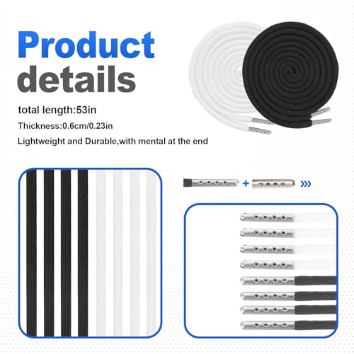 Calidad confiable: nuestros cordones están hechos de tela de polialgodón, ofreciendo capacidad de respiración, suavidad, comodidad ligera y larga durabilidad. Cada extremo está sellado con una punta de metal para un fácil enhebrado y uso prolongado.