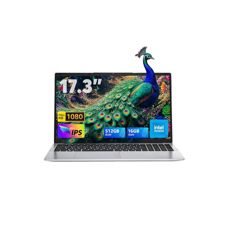 ACEMAGIC Laptop 2025, computadora portátil con pantalla FHD de 17.3 pulgadas con Quad Core-12th Alder Lake N97 (hasta 3.6 GHz), 16 GB de RAM DDR4 512 GB ROM, batería de 6000 mAh, plata