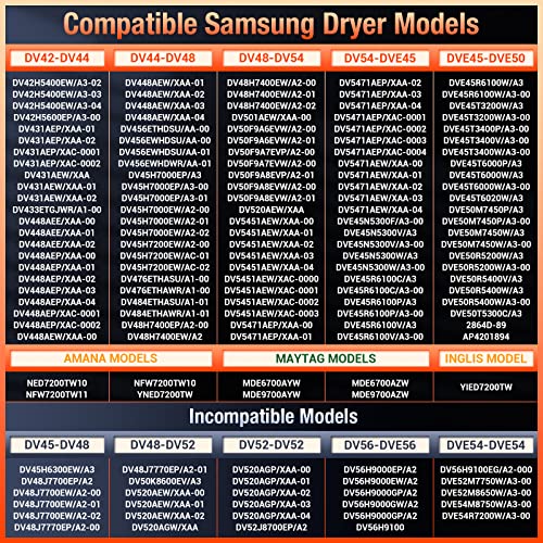 ❤ Compatible con la mayoría de marcas: Las 5 piezas de repuesto para secadora son especialmente compatibles con modelos Samsung, LG, Maytag, Sears, Kenmore, KitchenAid y Roper. ❤ Se puede instalar en el montaje DC97-14486A; también funciona para secadora Amana NED7200TW, NFW7200TW