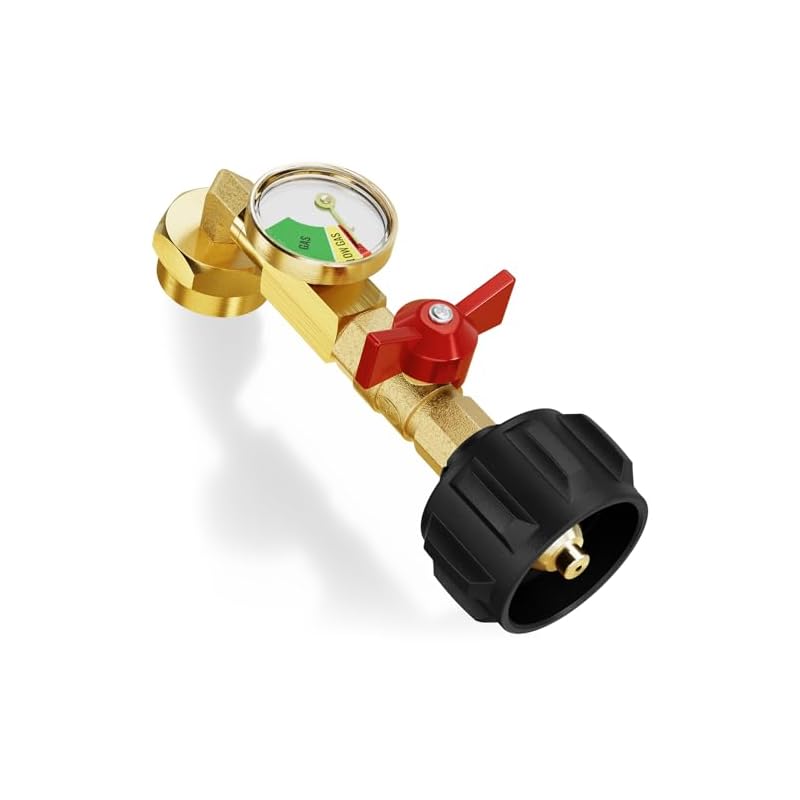 Adaptador de repuesto de propano con válvula y calibre, llena botellas de 1 libra desde un tanque de 20 libras, se adapta al tanque de propano QCC1/tipo 1 y conector de botella de propano