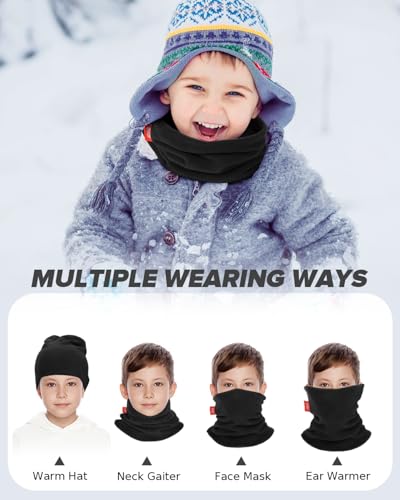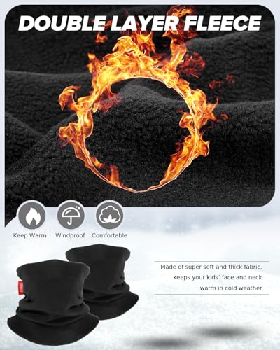 Aegend Calentador de cuello para niños, paquete de 2, polaina de cuello de forro polar de doble capa para niños, niñas, jóvenes, bufanda de invierno para clima frío