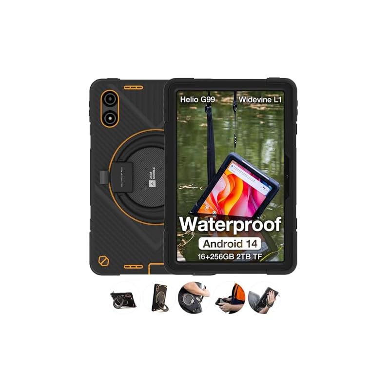 Resistente al agua: la funda protectora extraíble protege esta tableta resistente al agua de caídas, polvo y agua, mientras que permite un fácil desprendimiento para mayor portabilidad. Su soporte giratorio de 360 grados te permite ajustar sin esfuerzo la tableta Android a cualquier ángulo, proporcionando una excelente experiencia de visualización manos libres para el trabajo, entretenimiento o videollamadas en cualquier entorno
