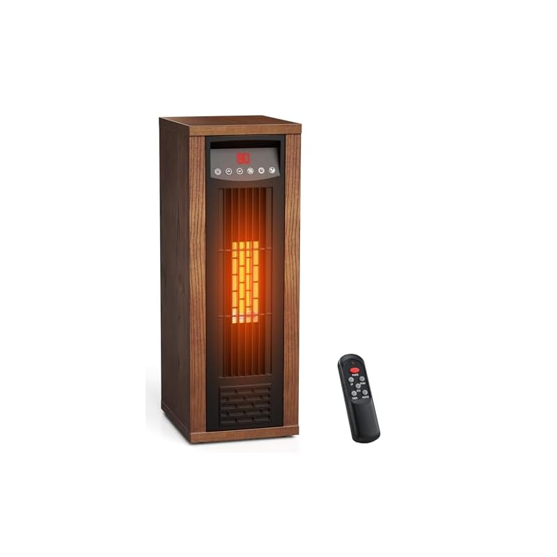 Elegante diseño exterior con tacto de madera: este calentador de cuarzo cuenta con un acabado fresco al tacto de madera que se mantiene seguro y cómodo incluso después de largas horas de uso. Su elegante diseño cuadrado combina perfectamente con los muebles, lo que lo convierte en un calentador funcional y una elegante pieza de decoración.