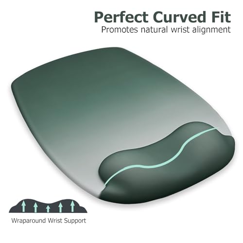 Cojín ergonómico para la muñeca para comodidad durante todo el día: construido con un reposamuñecas de gel suave, esta alfombrilla para mouse con reposamuñecas se adapta a tu muñeca para aliviar la presión y la tensión. Promueve la alineación adecuada de la muñeca para reducir la fatiga y ayudar a prevenir el túnel carpiano durante largas horas de escritura, navegación o juegos