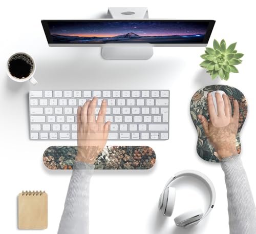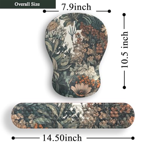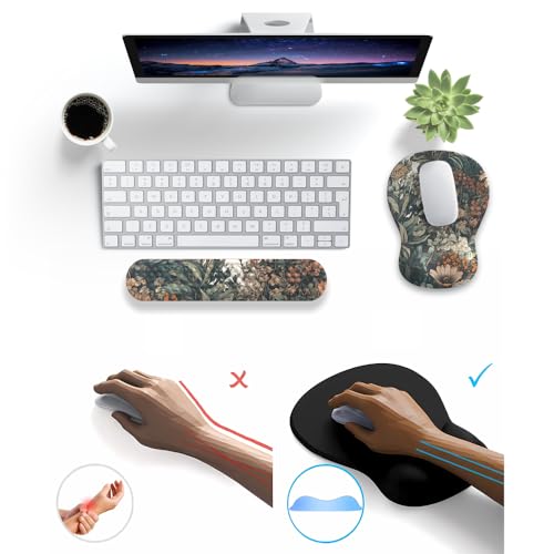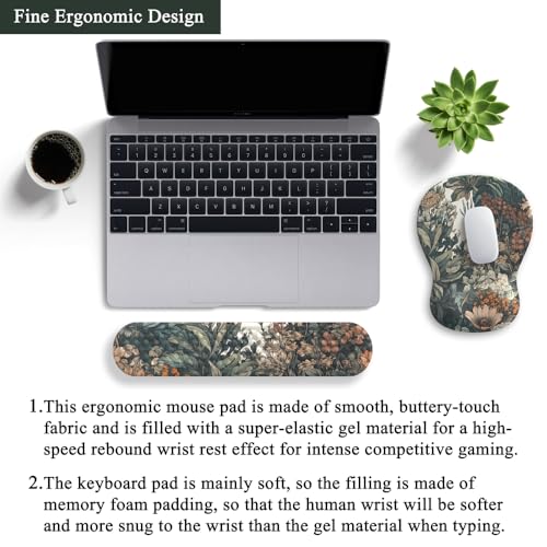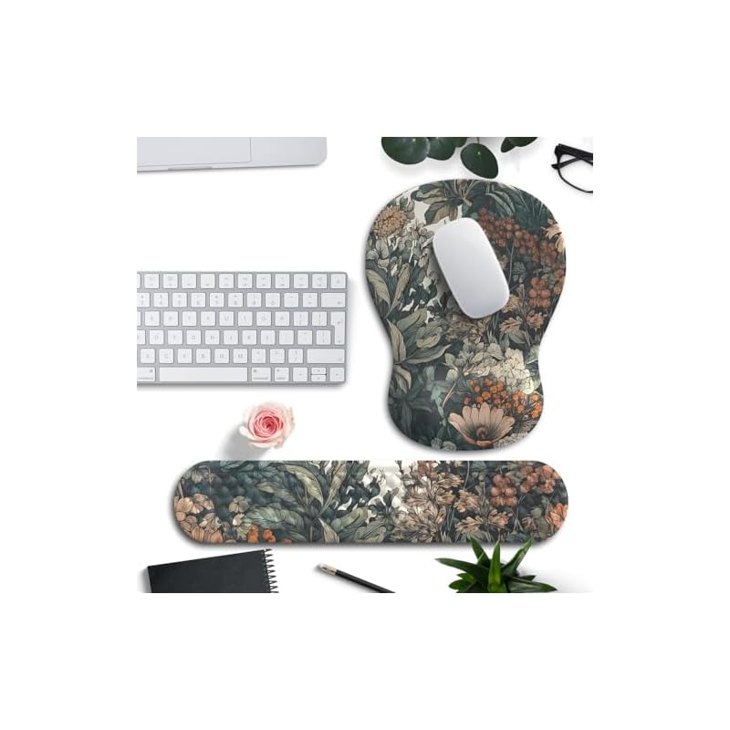 Especificaciones: Alfombrilla de mouse estética bohemia con teclado para reposamuñecas, diseño de flores silvestres vintage, reposamuñecas para teclado de computadora, base antideslizante, para el hogar y la oficina