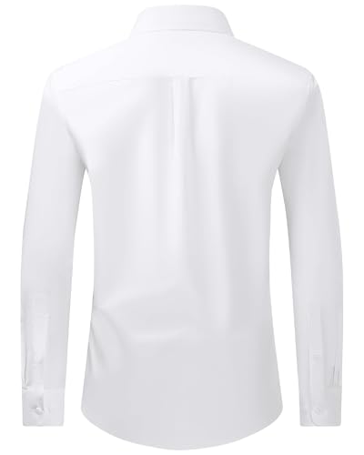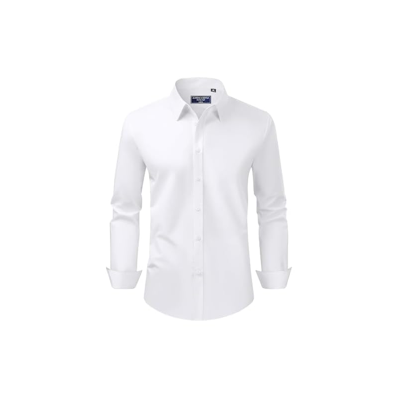 Especificaciones: Alimens & Gentle Camisa de vestir para hombre, ajuste regular, elástica, con protección contra manchas, manga larga, color sólido, para negocios, boda, camisas con botones