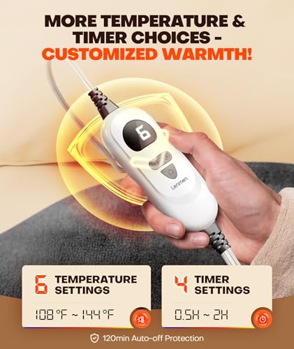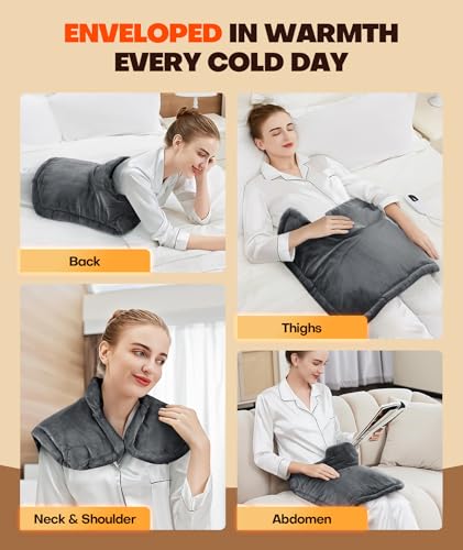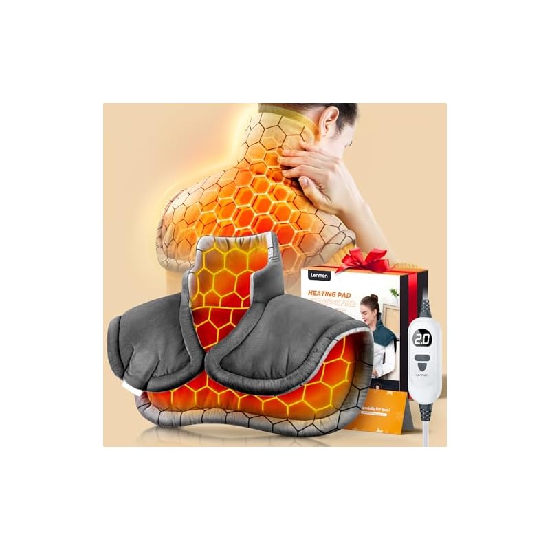 Especificaciones: Almohadilla de calentamiento rápido de 1 minuto con infusión de grafeno, almohadillas térmicas con peso para el cuello y los hombros y la espalda, envoltura térmica con 6 opciones de calor, 4