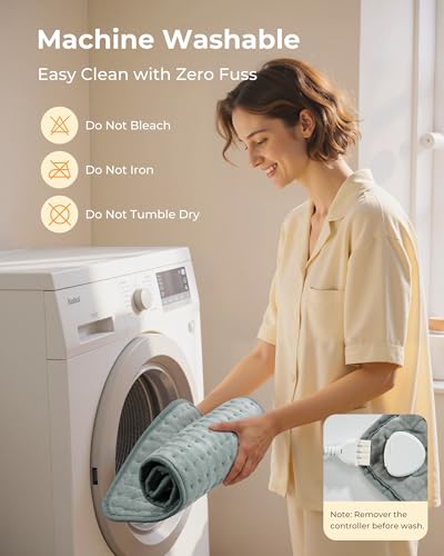 Fácil de lavar: la limpieza nunca ha sido tan fácil. La almohadilla térmica es lavable a máquina; simplemente retira el controlador y mételo en el lavado. Disfruta de un cuidado sin complicaciones y comodidad duradera, uso tras uso, sin preocuparte por manchas o acumulación.