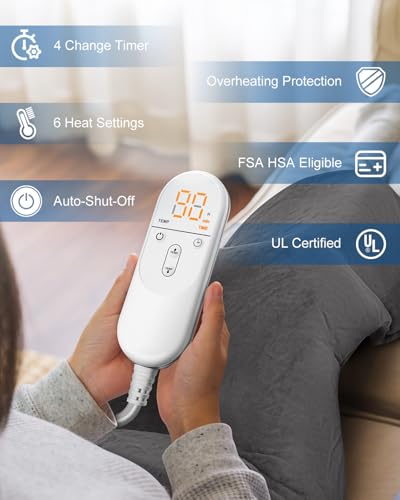 Relájate con tranquilidad: nuestra almohadilla térmica no solo es reconfortante, es una fortaleza de seguridad. Certificado UL para seguridad y con protección automática contra sobrecalentamiento. Personaliza tu experiencia con 6 ajustes de calor ajustables (suave a intenso) y 4 temporizadores de apagado automático. Perfecto para conciliar el sueño sin preocupaciones o centrarse en el trabajo. Ya sea que lo uses mientras lees, duermes en el sofá, o alimentas correos electrónicos en tu escritorio, la combinación de seguridad certificada y ajustes personalizados garantiza la máxima comodidad sin estrés