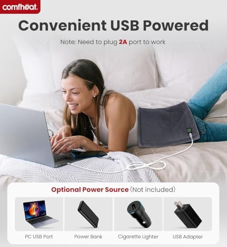 Práctica calefacción alimentada por USB: nuestra almohadilla térmica USB mide 12 x 16 pulgadas y viene con un cable USB de 5.9 pies de largo. Simplemente conéctalo a cualquier fuente de alimentación USB de 5 V/2 A (como un banco de energía, computadora portátil) para disfrutar de un calor relajante. Ideal para viajes, campamentos, vuelos o cortes de energía, perfecto para mantenerte cómodo y cálido dondequiera que vayas