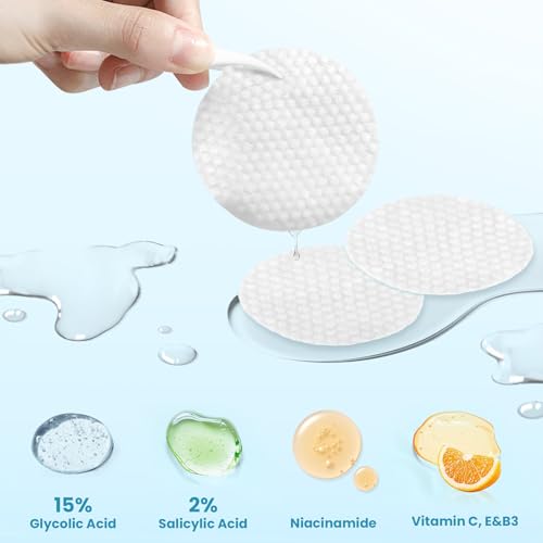 Almohadillas de rejuvenecimiento de ácido glicólico, 15% ácido glicólico ultra puro y 2% ácido salicílico exfoliante para cara, mantiene la piel suave y evita arrugas y líneas, renovación radiante de