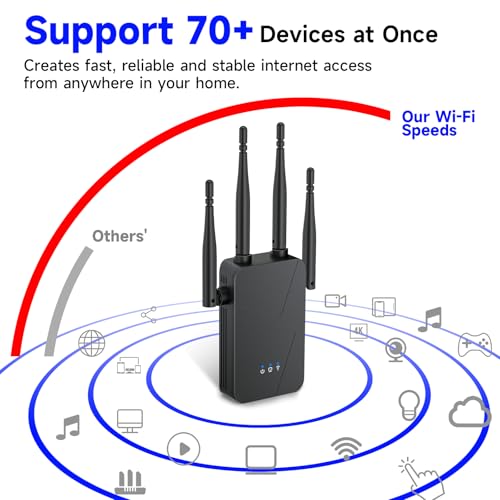 4 modos satisfacen sus diversas necesidades: el amplificador de Internet soporta repetidor, puente, punto de acceso y enrutador 4 modos. Ya sea que estés trabajando en línea, estudiando en línea o simplemente transmitiendo, este repetidor wifi de 4 modos lo hace y puede conectar hasta más de 70 dispositivos. Te ofrece una conexión fuerte y estable con dispositivos como computadoras portátiles, teléfonos inteligentes, altavoces, cámaras IP, tabletas, Fire Stick y más