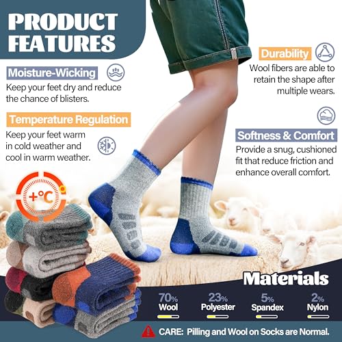 Anlisim Calcetines de senderismo de lana merina para niños y niñas pequeños, térmicos, cálidos, para invierno, calcetines de regalo, 6 pares