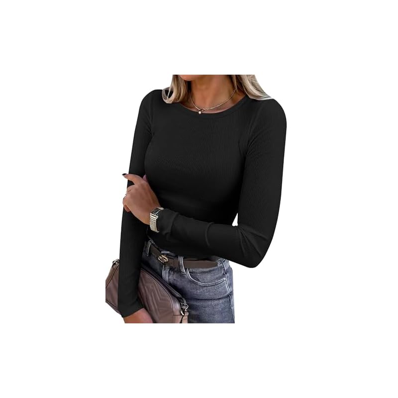 ANRABESS – Camisetas de manga larga para mujer, de punto acanalado, ajustadas, básicas, informales, para usar a capas o debajo del uniforme en el otoño