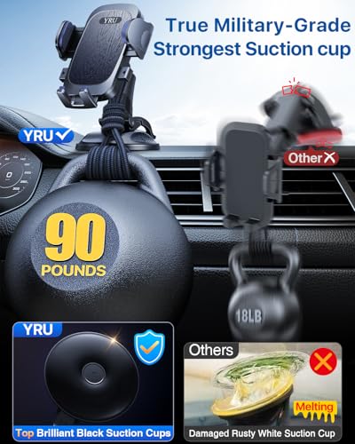Especificaciones: [Antivibración de grado militar y succión giratoria de 360°] Soporte de montaje para teléfono de coche mejorado 2026 【90+ libras el más seguro y fuerte con certificados de patente】Salpicadero