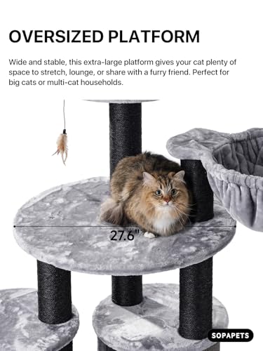 Perfect para gatos grandes de hasta 33 libras. Perfecto para razas grandes como Maine Coons y Ragdolls. Diseño resistente que soporta gatos de 20 a 30 libras con amplio espacio para trepar, rascar y descansar