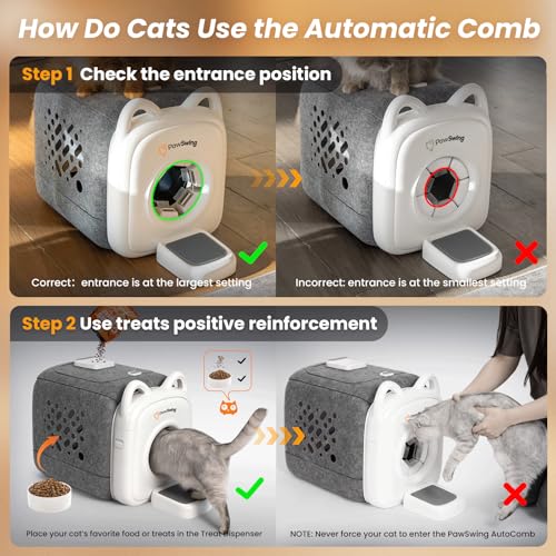 Especificaciones: Aseador Automático para Gatos de 360° Envolvente Amigable con la Piel, Suministros de Aseo, Cepillo Autolimpiante con Imitación de Lengua de Gato y Dispensador de Premios, Reduce la Muda y