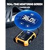 Luz LED y pantalla digital en tiempo real: el compresor de aire está equipado con luces LED que proporcionan iluminación en entornos tenues; esto permite a los usuarios leer simultáneamente la pantalla e inflar por la noche. Con lecturas de presión en tiempo real en pantalla, puede administrar fácilmente el proceso de inflado y realizar ajustes.