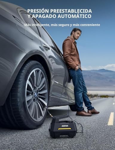 AstroAI – Inflador de neumáticos – Compresor de aire portátil para neumáticos de auto – Bomba automática de 12 V CC con manómetro digital, 100 PSI, con luz LED de emergencia, para bicicletas, globos