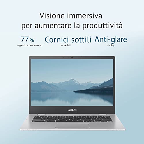 ASUS Chromebook CX1400CNA, Ordenador portátil con pantalla FHD antirreflectante de 14″, Intel Celeron N3350, 4 GB de RAM, 64 GB eMMC, sistema operativo Chrome OS, Plata