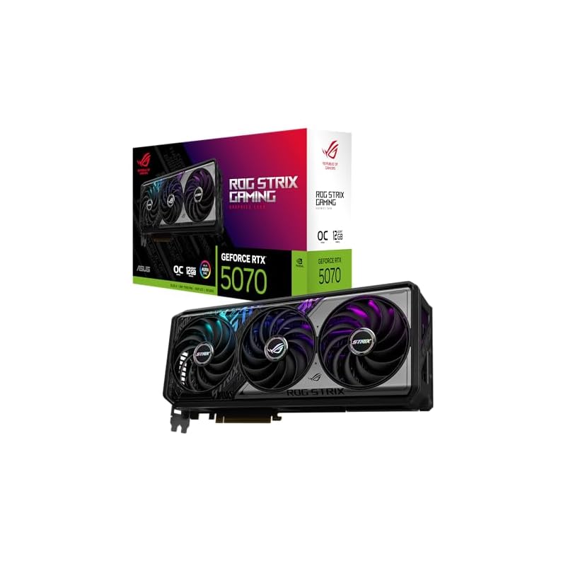 ASUS Tarjeta gráfica ROG Strix GeForce RTX™ 5070 OC Edition 12 GB GDDR7 (PCIe® 5.0, 12 GB GDDR7, HDMI®/DP 2.1, 3.2 ranuras, ventiladores de tecnología axial, diseño MaxContact, almohadilla térmica de