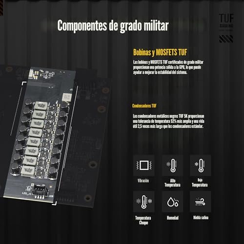 Especificaciones: ASUS TUF Gaming GeForce RTX ™ 5070 Ti 16GB GDDR7 OC Edition Tarjeta gráfica para juegos (PCIe® 5.0, HDMI®/DP 2.1, ranura 3.125, componentes de grado militar, revestimiento protector de PCB,