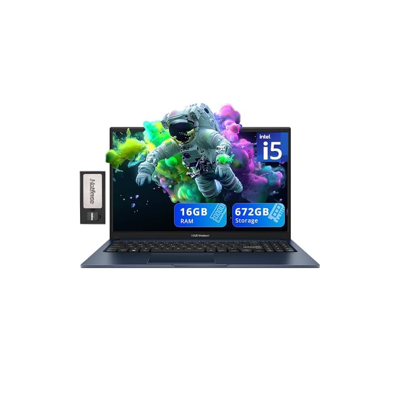 Especificaciones: ASUS Vivobook 15 – Laptop empresarial, pantalla FHD de 15.6 pulgadas, Intel i5-1235U, 16 GB de RAM, 672 GB de almacenamiento (512 GB SSD + 160 GB de estación de acoplamiento), gráficos Intel Iris Xe