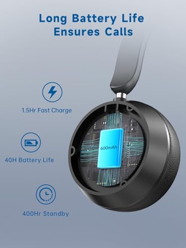 【Hasta 40 horas de reproducción| Carga rápida tipo C para uso continuo】Disfruta de hasta 40 horas de auriculares con micrófono de uso continuo con una sola carga. Con carga rápida tipo C, una carga completa tarda solo 1.5 horas, y un descanso rápido para el café te da hasta 2 horas de uso. Perfecto para el trabajo durante todo el día o llamadas frecuentes, este auricular inalámbrico USB minimiza las interrupciones causadas por retrasos de carga.
