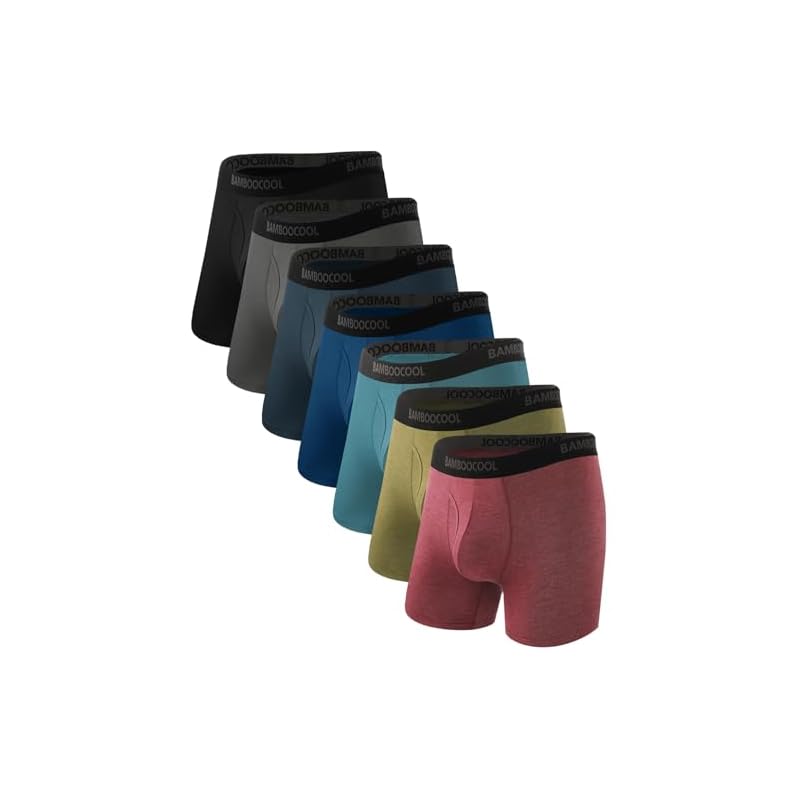 BAMBOO COOL Calzoncillos tipo bóxer transpirables para hombre con bragueta que absorbe la humedad, ropa interior ligera, paquete de 7