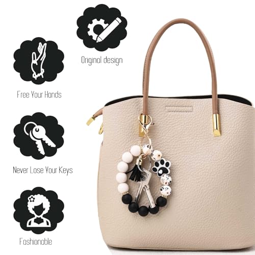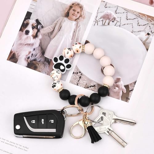 BAOSIWA Llavero de Pulsera con Cuentas de Silicona Anillo para Llaves Brazalete Lindo Portallaves de Coche para Mujeres y Niñas