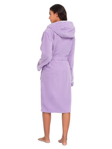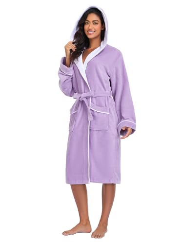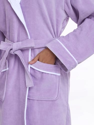 Bata de baño para mujer, bata de spa 100% algodón, OEKO-TEX, terciopelo de rizo, longitud a la rodilla (correr pequeño, talla más grande)