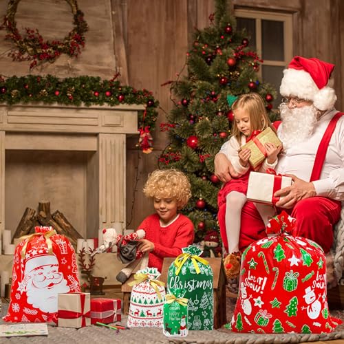 Diseño brillante y envoltura de regalo: estas bolsas de regalo están impresas con diferentes patrones navideños con elementos navideños y coloridos, el diseño único es muy adecuado para uso en fiestas para crear un ambiente festivo especial. Son ideales para regalos de diferentes tamaños, almacenar regalos en esta bolsa dará a los niños más sorpresa, perfectas bolsas de regalo de Navidad