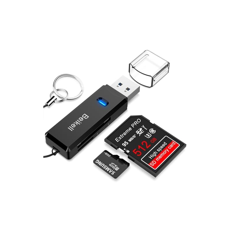 Especificaciones: Beikell Lector de Tarjetas USB 3.0 de Memoria SD/Micro SD de Alta Velocidad con Llavero Portátil para TF, SDXC, SDHC, MS, MMC, MSXC, Compatible con Windows y Mac OS