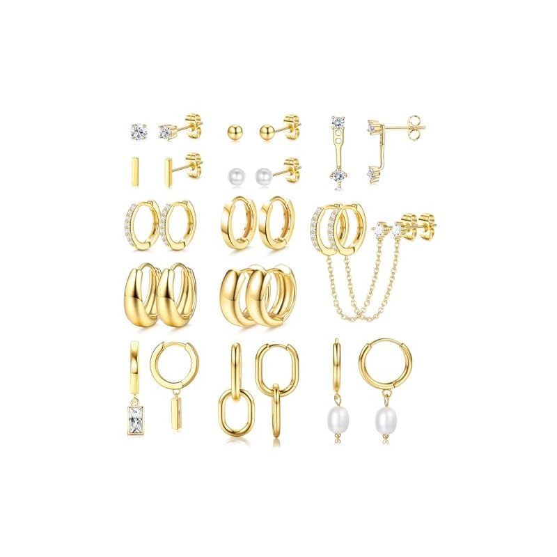 Especificaciones: BESTEEL Juego de 13 pares de arracadas pequeñas de oro para mujer, chapadas en oro de 14 quilates, ligeras, hipoalergénicas, delicadas, para regalo