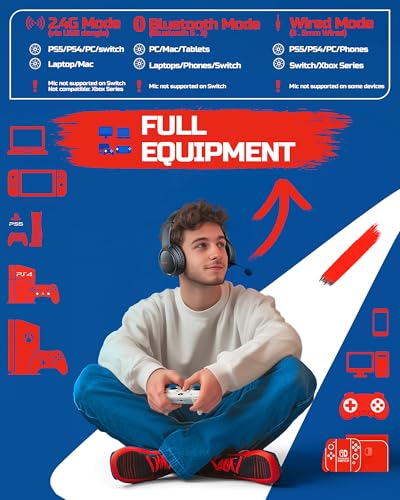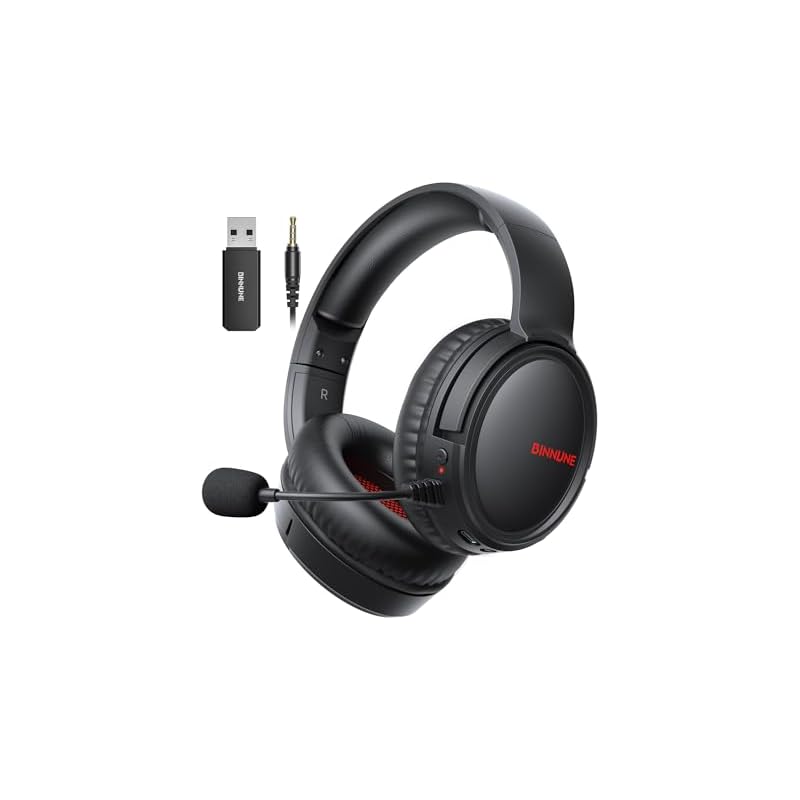 Especificaciones: BINNUNE Auriculares inalámbricos para juegos — Dongle USB de baja latencia de 2.4 GHz + Bluetooth, controladores de 1.969 in 7.1 Surround, micrófono con cancelación de ruido, batería de 40 horas