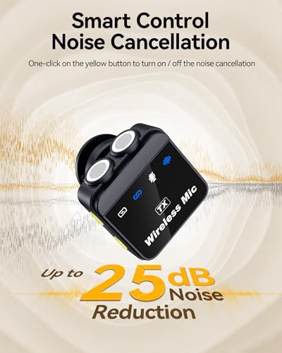 Modo de doble botón: este micrófono inalámbrico tiene 4 modos con botones duales, lo que le permite cambiar sin problemas entre modos de reducción de ruido profesional/silencio puro/reverberación inmersiva, lo que le permite cambiar rápida y cómodamente entre diferentes modos. El modo de reducción de ruido puede reducir 25 decibelios, y el chip de reducción de ruido profesional integrado puede suprimir varios ruidos en el entorno, asegurando una grabación clara y precisa de tu voz en cualquier dirección.